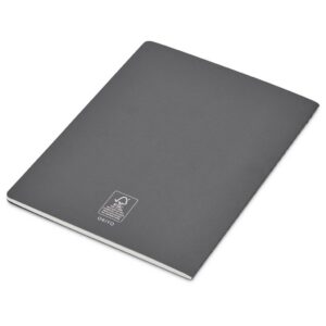 The white FSC logo printed on the back cover of the notebook is printed during manufacture. The branding method necessary to print a logo on the front cover is different, and printing in white is susceptible to dye migration. White logo branding is therefore not offered on the coloured notebooks and is only available on the natural notebooks.