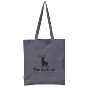 This eco-friendly, reusable tote bag is made from recycled cotton. Promote your brand’s commitment to sustainability with this environmentally conscious purchase.