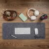 Dual function pen caddy and phone stand. The caddy is made from RPET felt, which is a strong and durable material made from recycled plastic bottles. The phone stand base is made from sustainable bamboo.