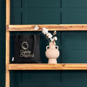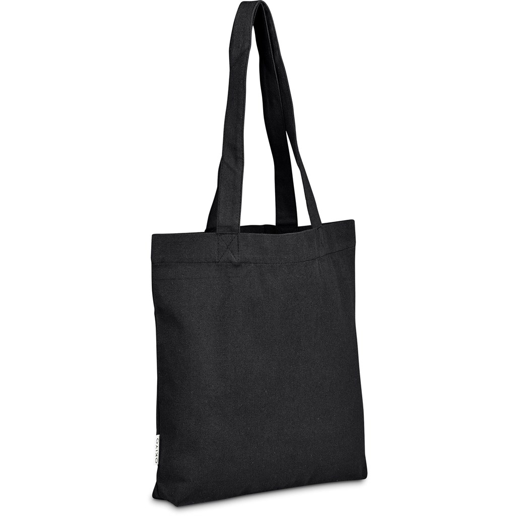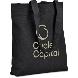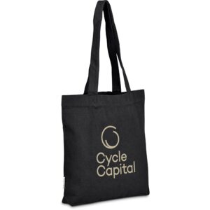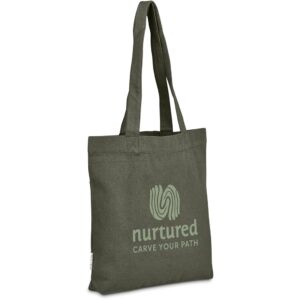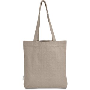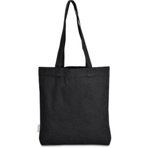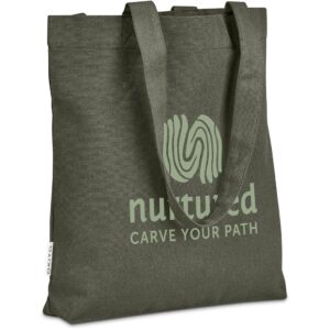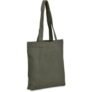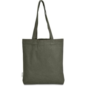 This bag is made from pre-consumer recycled cotton canvas. A mix of scraps, off-cuts and rejected textile articles is collected from textile factories and mills. It’s then recycled to produce the material, making it a more sustainable choice.