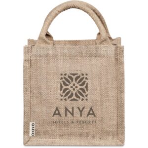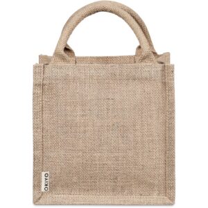 A reusable alternative to disposable gift bags, made from natural and sustainable jute material, with cotton rope handles.