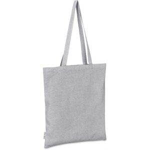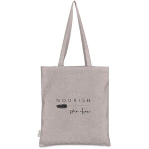 This bag is made from pre-consumer recycled cotton. A mix of scraps, off-cuts and rejected textile articles is collected from textile factories and mills. It’s then recycled to produce the material, making it a more sustainable choice.