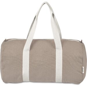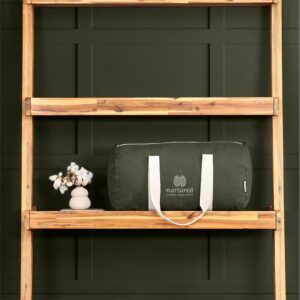 This bag is made from pre-consumer recycled cotton canvas. A mix of scraps, off-cuts and rejected textile articles is collected from textile factories and mills. It’s then recycled to produce the material, making it a more sustainable choice.