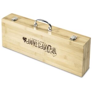 Executive gifting meets eco-conscious grilling with this superbly presented bamboo braai set.