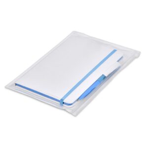 The matching matte textures of this notebook and pen, combined with the colour accents, make them perfect partners. The pouch is made from good quality PVC, and has a ziplock closure. It’s tactile and durable, and can be reused for storing folded documents, cards, notes and other odds ‘n ends.