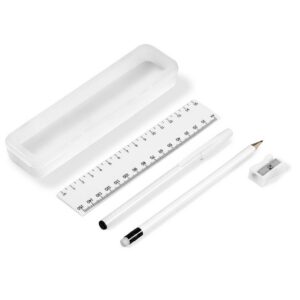 This colourful, attractive and affordable stationery set includes our Pulse Stationary Case ((box-1736), our Scholastic 15cm Ruler (Ruler-3), in a colour of your choice, together with a matching colour Aruba Pen (Pen-1657) and a Brainiac Pencil (Pencil-1287).