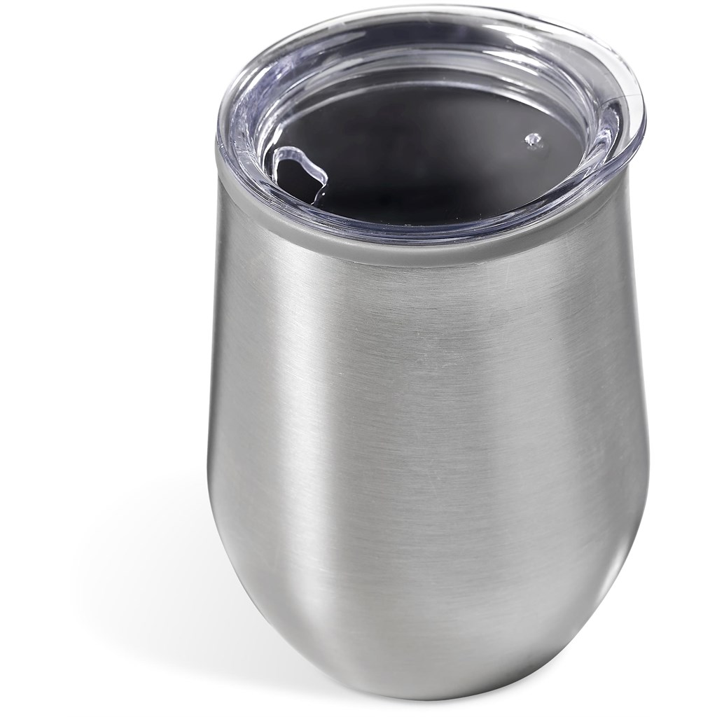This classic design BPA-free, double-wall cup can be used as an on-the-go coffee cup, or as a tumbler for wine or other beverages when you’re outdoors. It has a stainless steel outer wall and a polypropylene inner wall that keeps drinks hot or cold for longer, and a secure push-on lid. The Madison Cup laser engraves to a shiny steel finish, except for the uncoated silver model, which engraves to a natural etch.