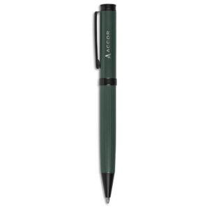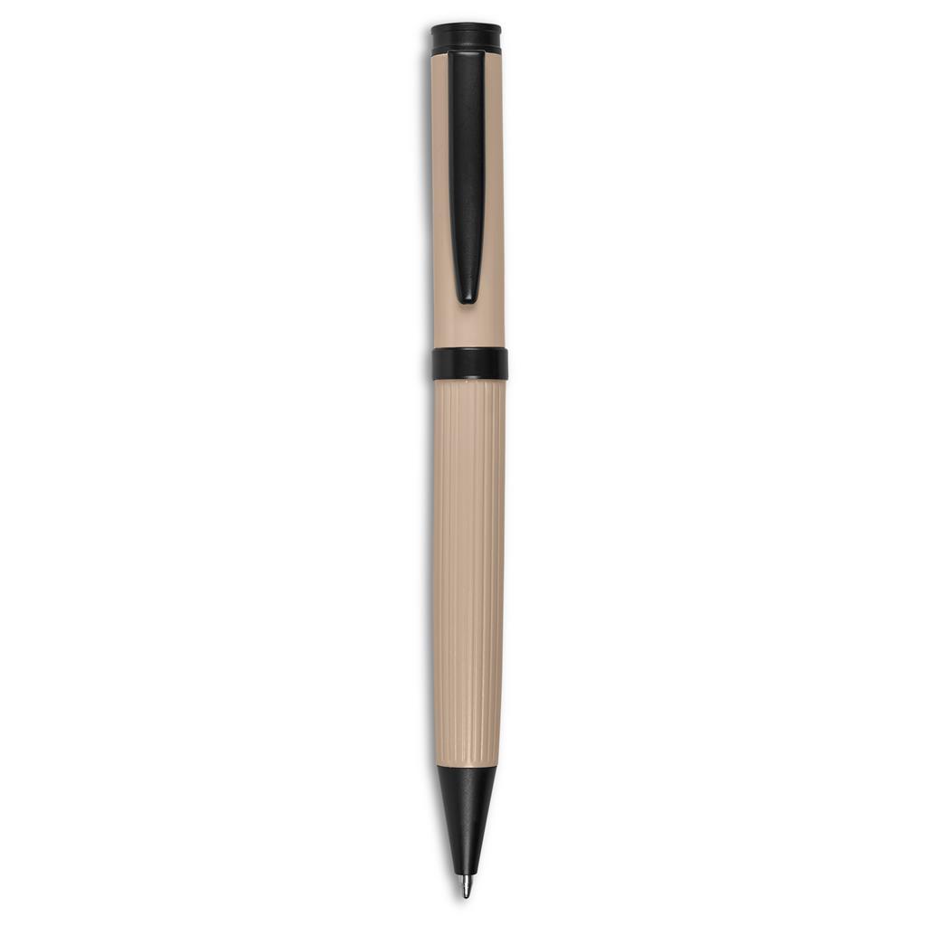An elegant metal ball pen featuring a gently ribbed lower barrel and a smooth upper barrel, ideal for branding. It includes a smooth-writing refill with a minimum writing distance of 3,000 metres, and a precision twist-action mechanism for effortless use. A durable, stylish choice for everyday writing or premium promotions.