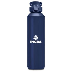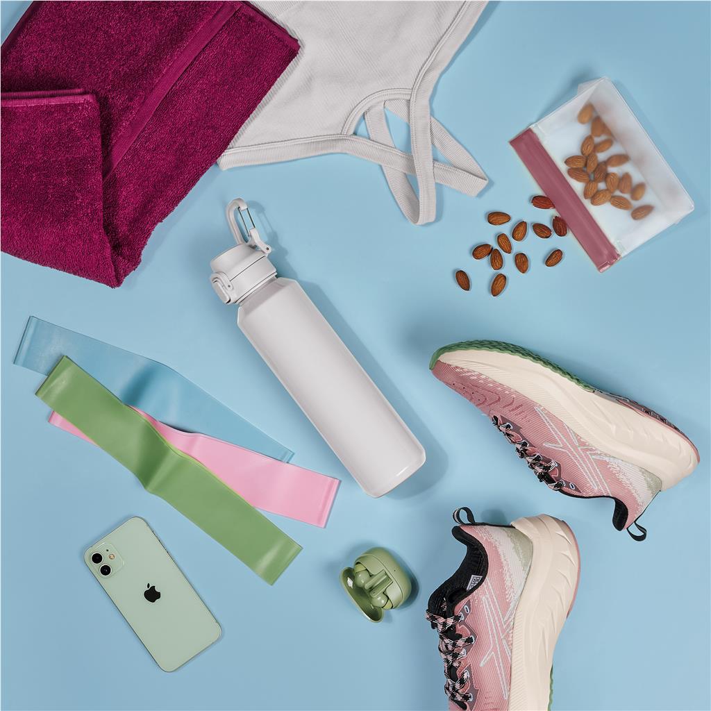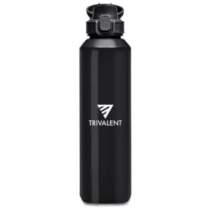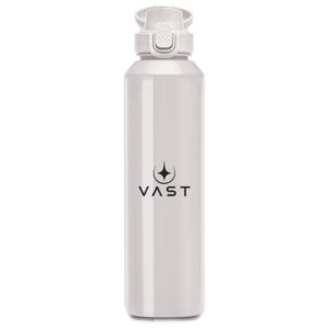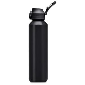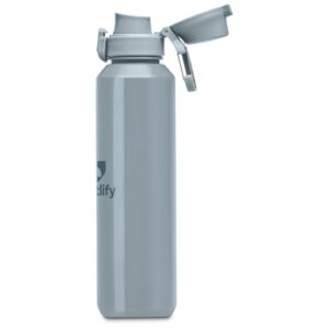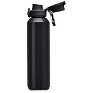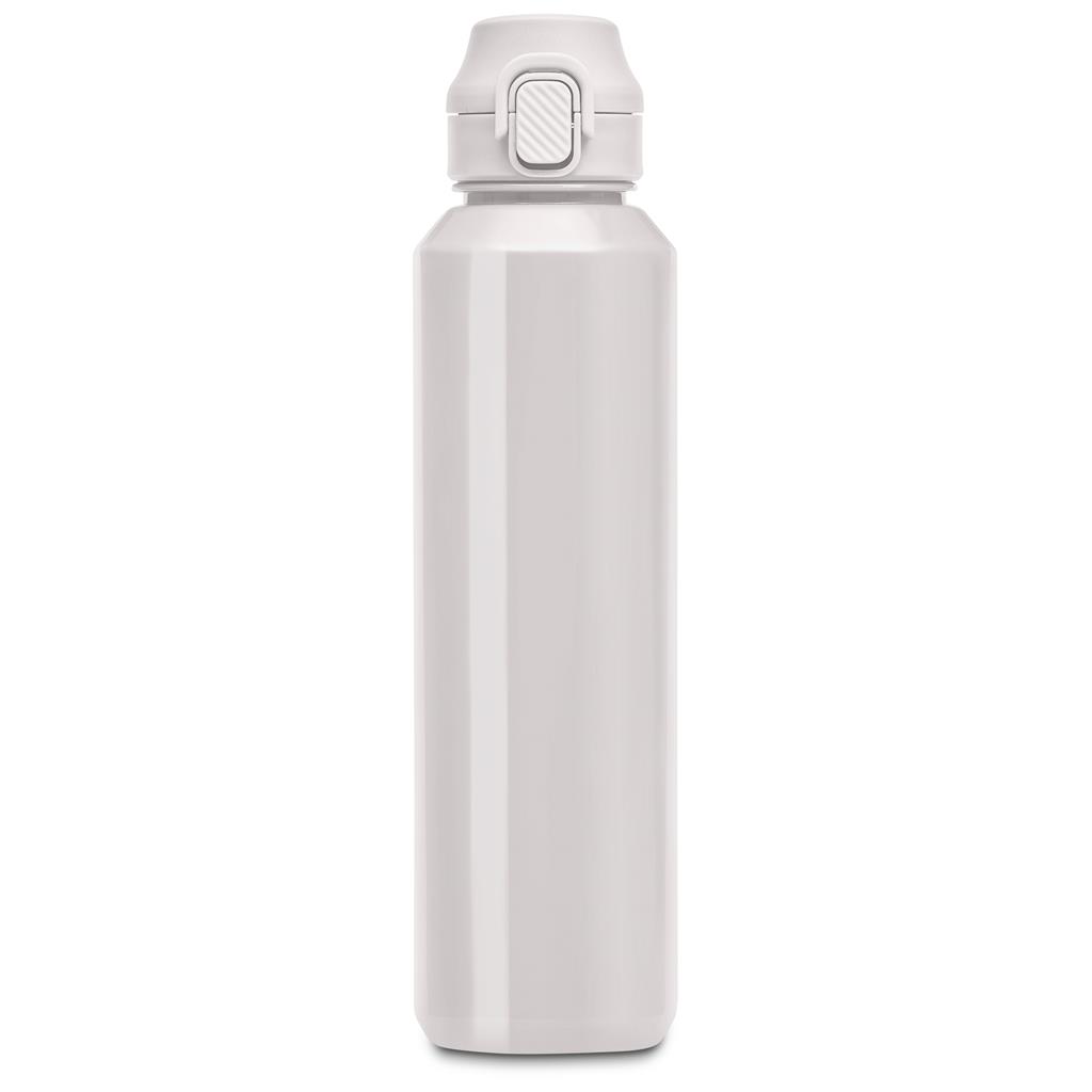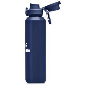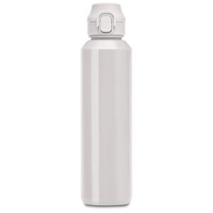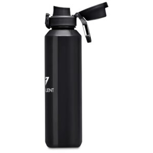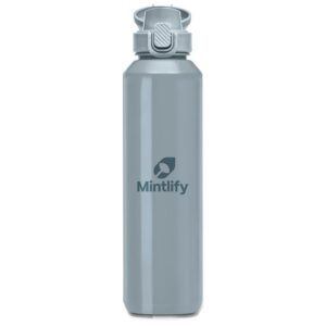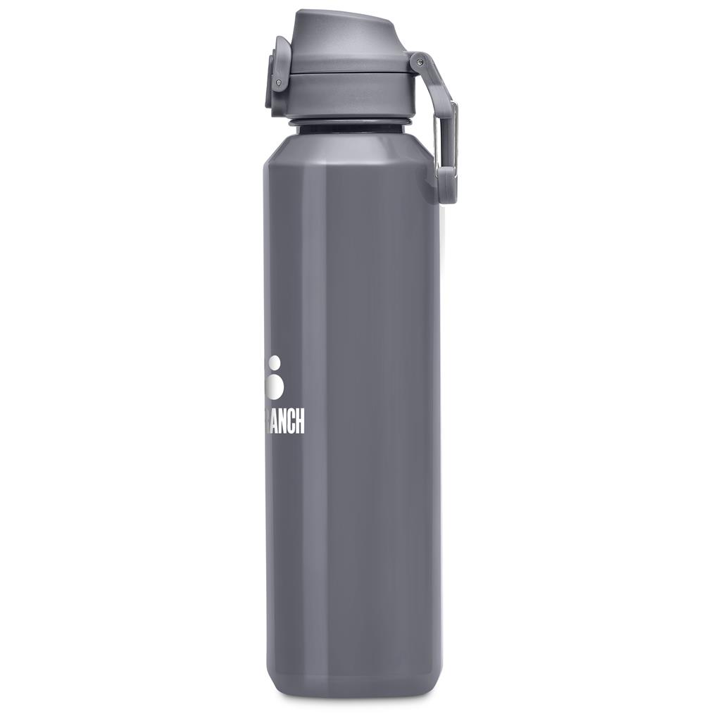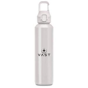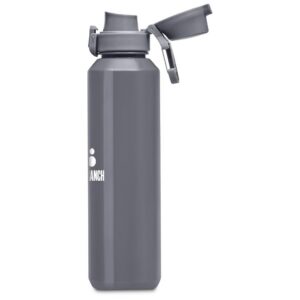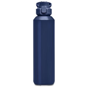 The body of this water bottle is made from BPA-free, food-grade recycled single-use plastic. It’s lightweight and easy to carry, and you can clip it onto your bag with the included clip attachment. The lid features a lock mechanism to keep it securely closed and a flip-top button to easily open the lid when you need a drink.