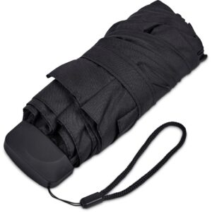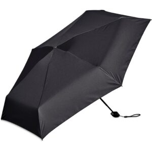 An ultra-compact umbrella in an EVA pouch. It slips easily into a bag, so it’s a good option for everyday use or travel. The recycled PET material is made from recycled plastic bottles, making this a more sustainable product.