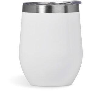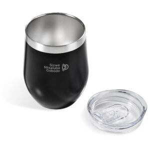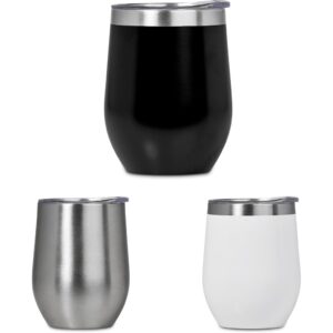 The stainless steel, double-wall vacuum construction of this classic design, BPA-free cup will keep liquids hot or cold for hours. It’s best used as an on-the-go coffee cup, or as a tumbler for wine or other beverages when you’re outdoors. It has a secure, transparent lid with a sliding closure. The Sheridan Cup laser engraves to a shiny steel finish, except for the uncoated silver model, which engraves to a natural etch.