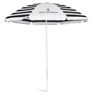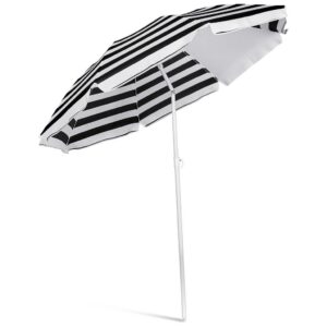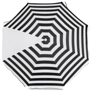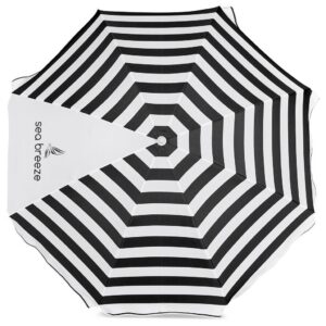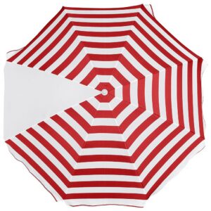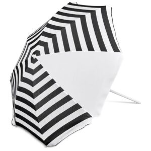 Keep cool and shaded in style with this coloured striped beach umbrella. Designed with a sturdy steel pole and a convenient tilt function, it allows you to adjust the shade as the sun moves throughout the day. The vibrant striped canopy adds a cheerful, summery look, while the durable fabric provides reliable sun protection. Includes a matching cover with a carry handle, making it easy to store and transport to the beach, park, or any outdoor outing. This umbrella has been designed to proudly display your logo, with one panel in plain white, to facilitate screen print branding.