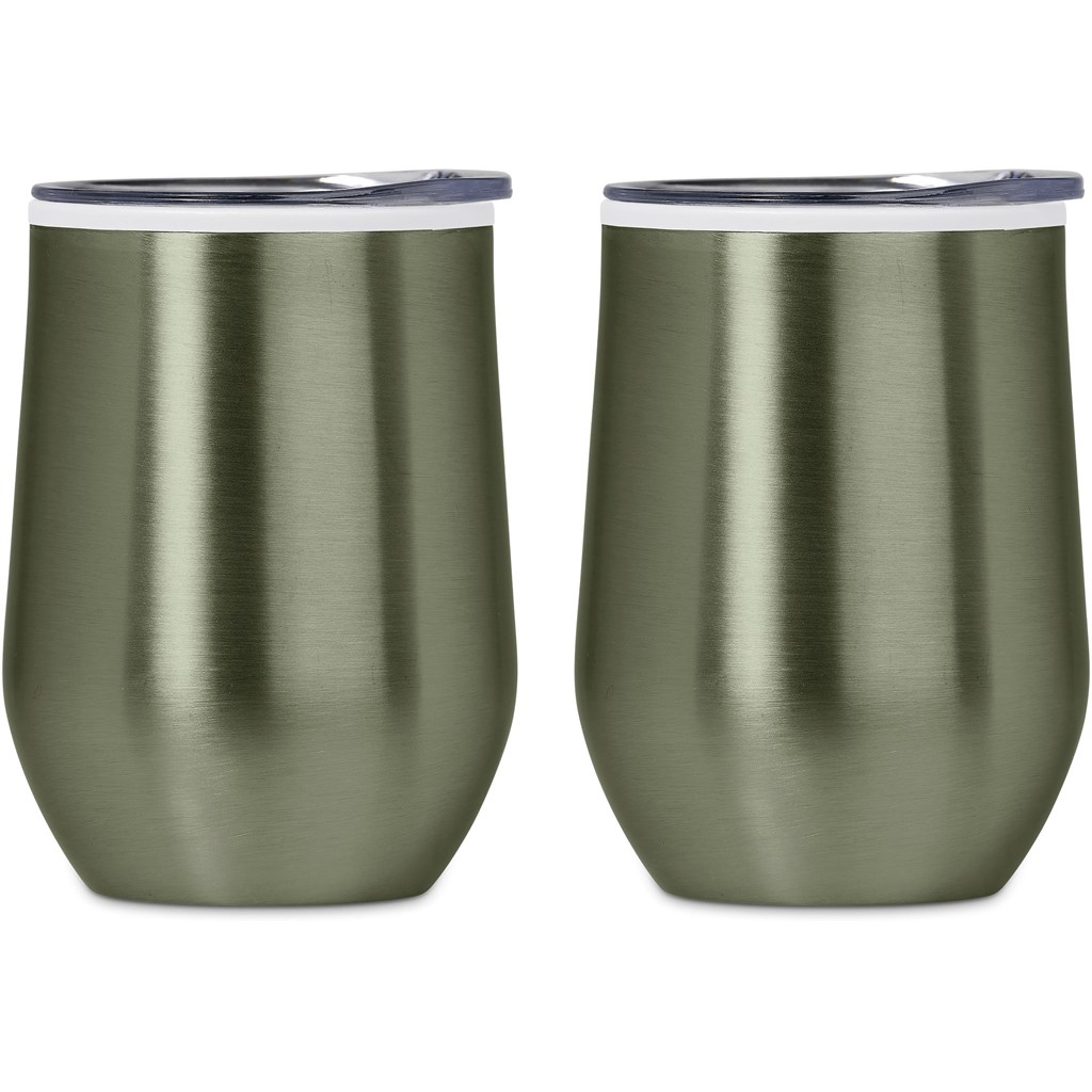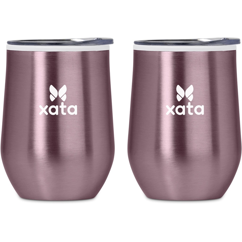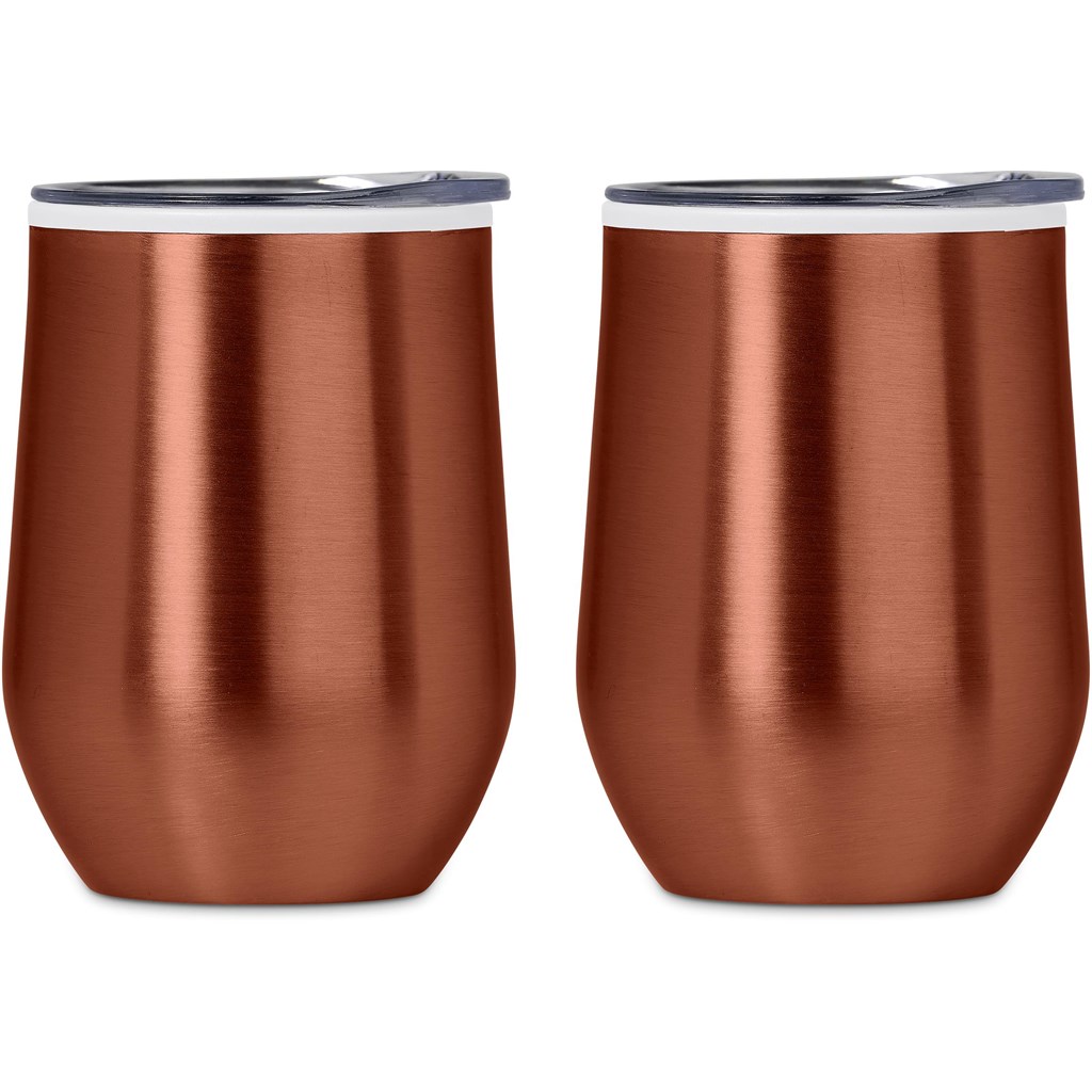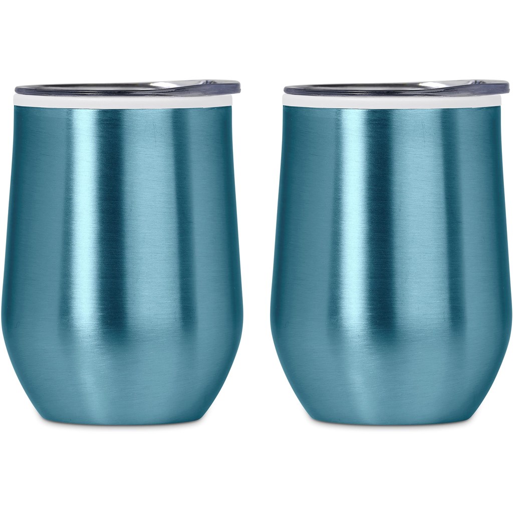 his classic design BPA-free, double-wall cup can be used as an on-the-go coffee cup, or as a tumbler for wine or other beverages when you’re outdoors. It has a stainless steel outer wall and a polypropylene inner wall that keeps drinks hot or cold for longer, and a secure push-on lid. If you’re looking for something a little different from your standard corporate and promotional colours, then consider this refreshing double-wall tumbler set, which is offered in contemporary, fashionable colours with a striking finish.