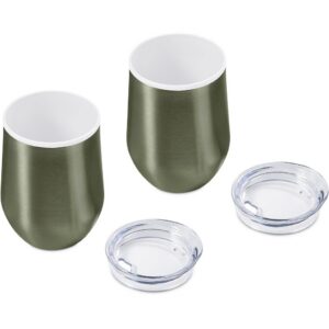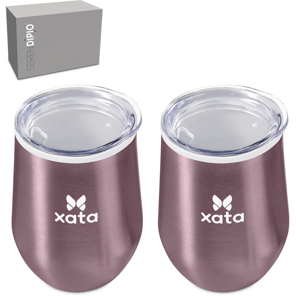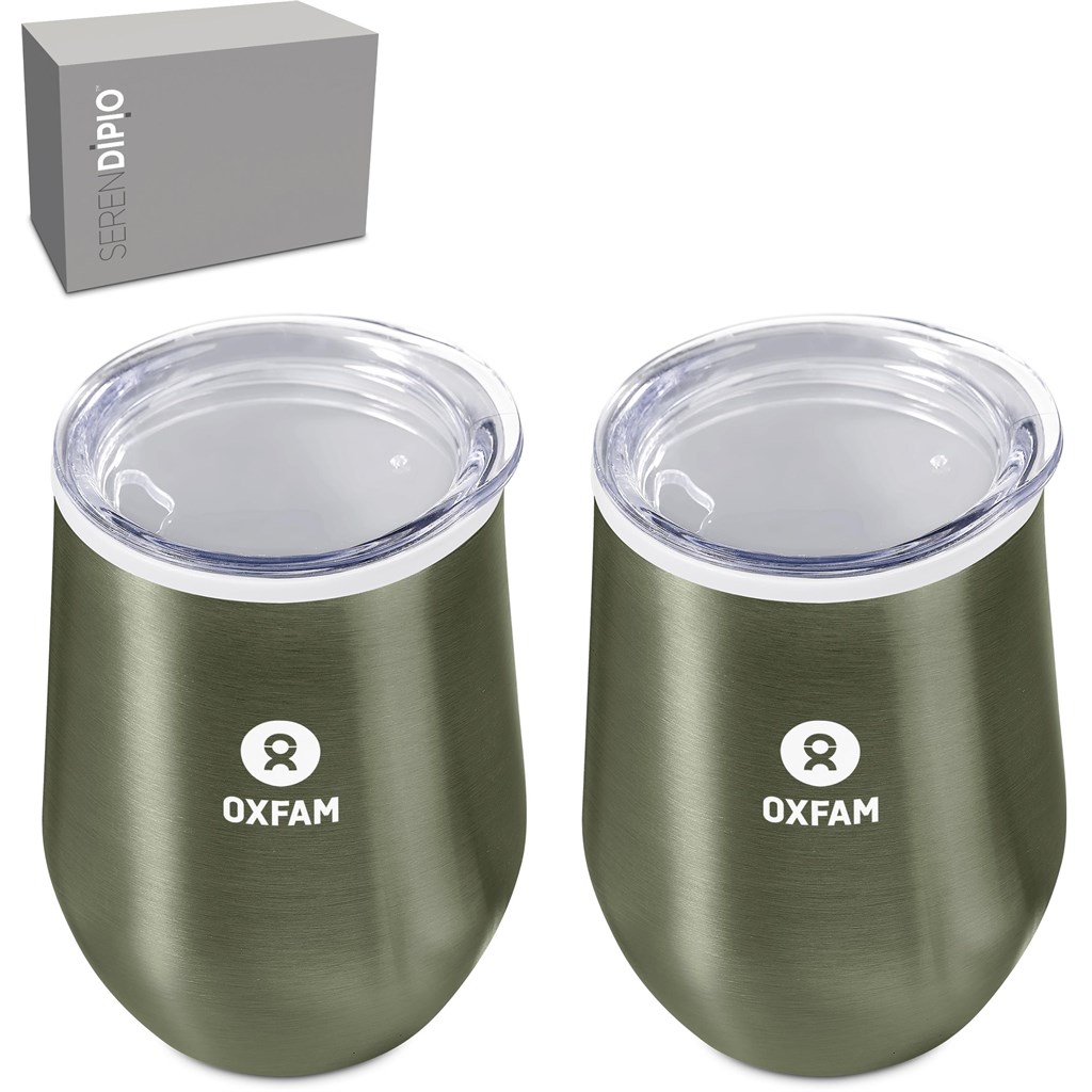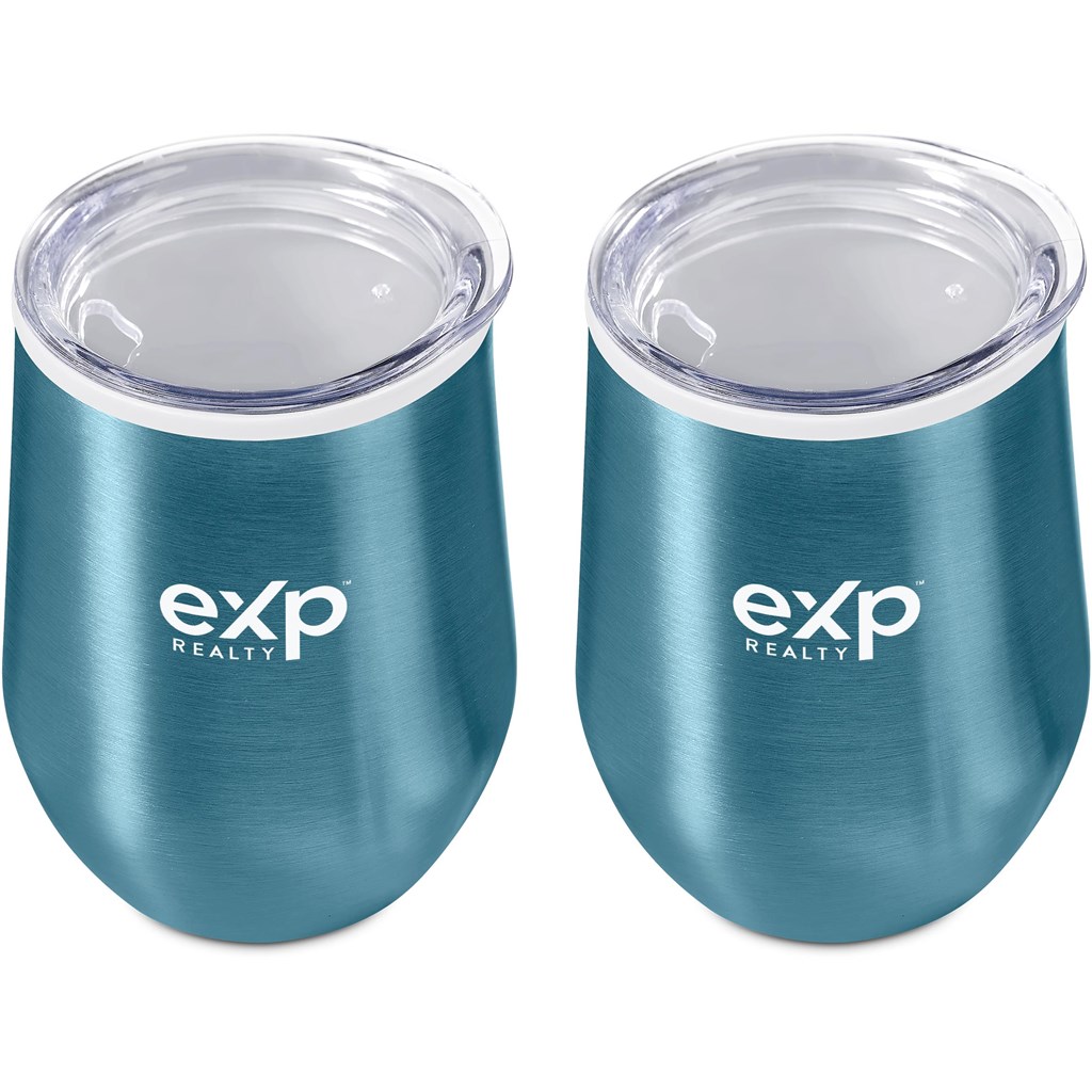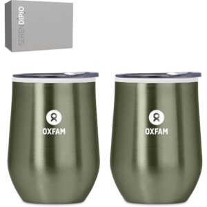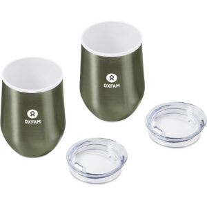 his classic design BPA-free, double-wall cup can be used as an on-the-go coffee cup, or as a tumbler for wine or other beverages when you’re outdoors. It has a stainless steel outer wall and a polypropylene inner wall that keeps drinks hot or cold for longer, and a secure push-on lid. If you’re looking for something a little different from your standard corporate and promotional colours, then consider this refreshing double-wall tumbler set, which is offered in contemporary, fashionable colours with a striking finish.