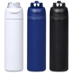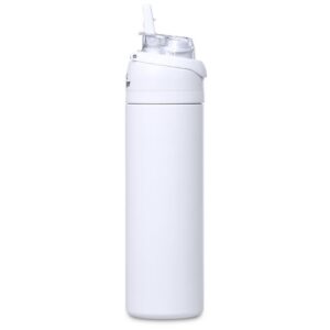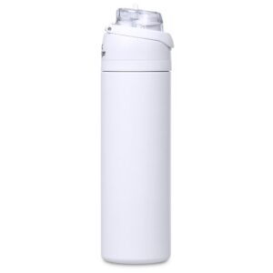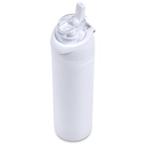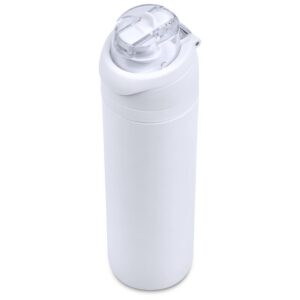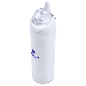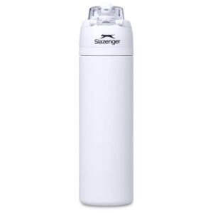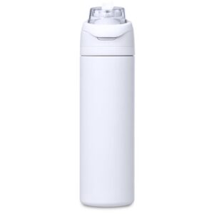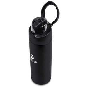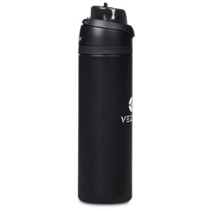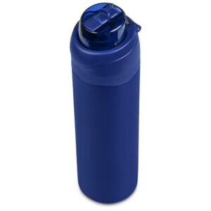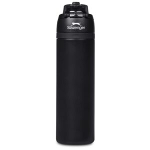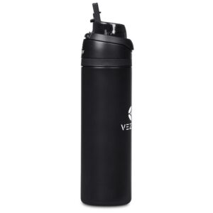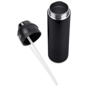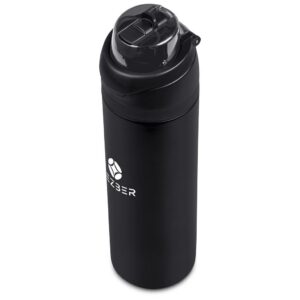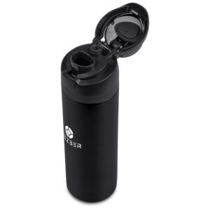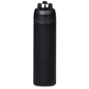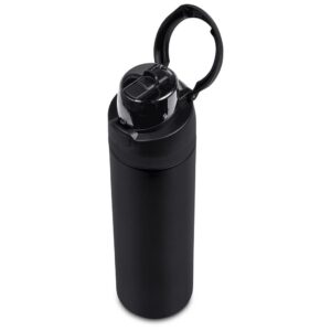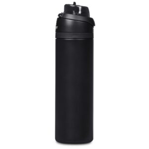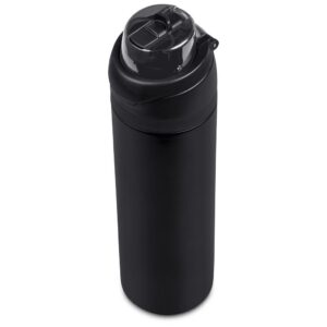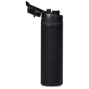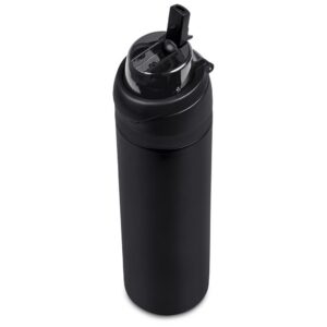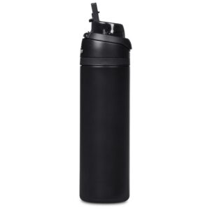 The innovative swig or sip lid design of this sporty water bottle gives you two drinking options: hold it upright to sip through the built-in flip straw, or tilt back to swig through the drinking port opening. Use the push-button to pop the lid open and enter one-handed swig mode. It’s equipped with a built-in handle that can be flipped up for easy carrying and flipped down to lock the push-button. The lid also has a clip-lock mechanism to keep it watertight when not in use, but easy to pop open when you need to hydrate. Unscrewing the lid from the base reveals a wide mouth, which makes it easy to load ice or fruit into your water. The bottle base is made from strong and durable BPA-free stainless steel with a matte-coated finish. It has a double-wall vacuum construction, which ensures that liquids inside stay hot or cold for hours.