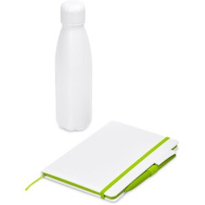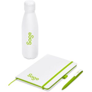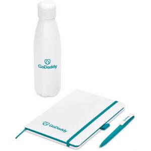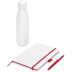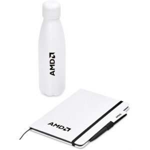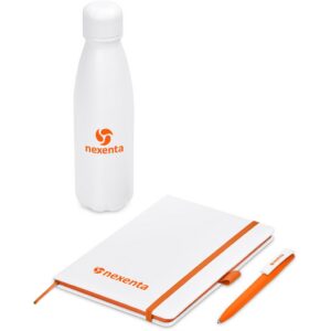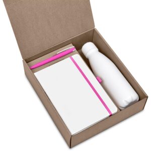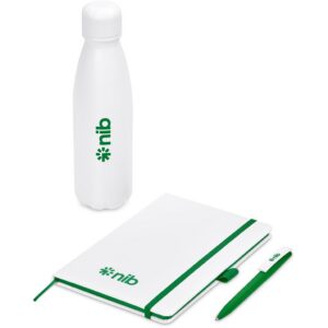 An aluminium bottle, a notebook and a plastic ball pen are neatly presented together in a gift box. This set is suitable as a client gift, or for staff and onboarding of new members to the team. A pre-packaged gift set not only looks impressive, but can also be a convenient and practical option when it comes to transport and delivery.
