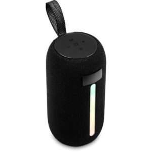 Play it loud and proud with crisp sound at high volumes and dancing RGB lights, or tone it down and relax with an alternative calming light mode (or no light at all). This 8W speaker features RGB lights with a choice of 6 settings. Carry it with you or hang it up, using the handy finger loop.