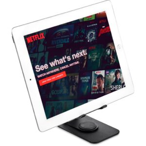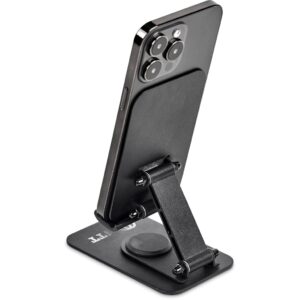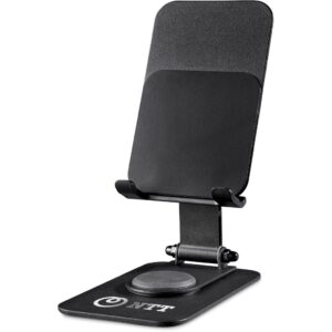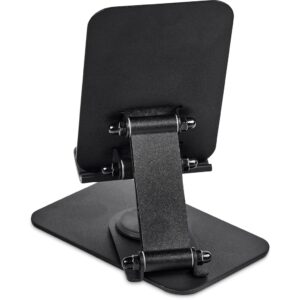 Solid and stable, this versatile phone and tablet stand can be adjusted to your preferred height and angle. It features full, 360 degree rotation capability, and it can be folded up neatly for travelling.
