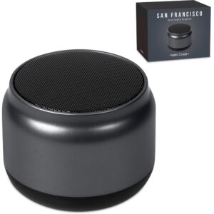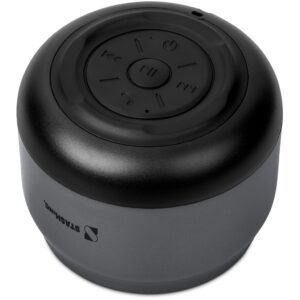 The modern, futuristic design of this compact Bluetooth speaker is complemented by the loud and crisp sound you’ll get from it.