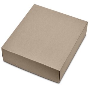 The box is 27 ( l ) x 23 ( w ) x 7.5 ( h ) cm, and is made from natural kraft board.