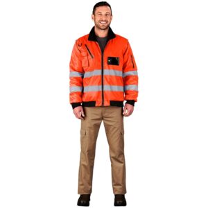 contrast ribbed cuffs and waistband • slanted welt pockets • silver 50mm reflective tape detail