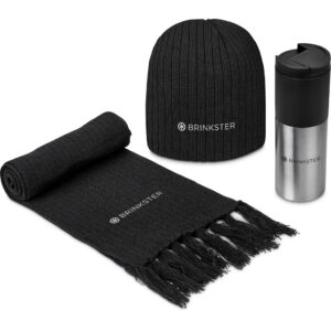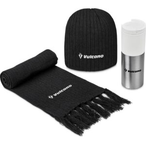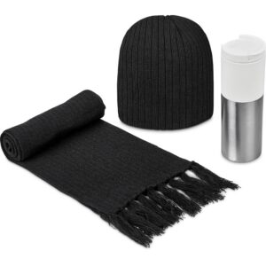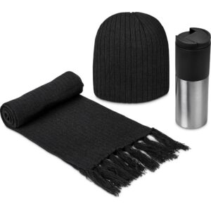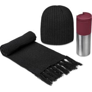 Combine the bright colours of the Typhoon tumbler with the classic cable rib knit beanie and scarf to create an ideal gift for winter.