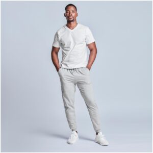 - elasticated waistband with drawcord • two side pockets • fashionably tapered trouser legs • rib finish