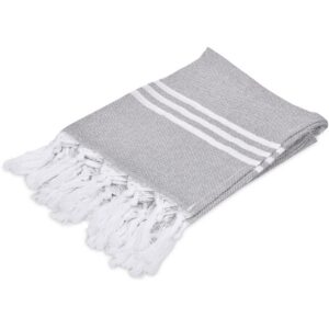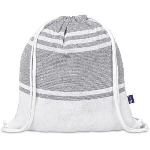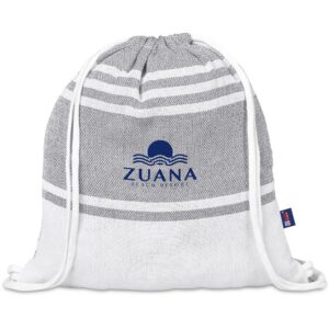 A Turkish-style, quick-drying towel with tassels on either side. This fashionable towel is super-absorbent, soft and lightweight. Includes a matching drawstring bag that is well-suited for your