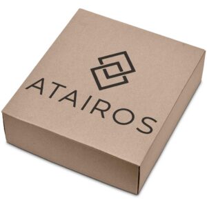 The box is 27 ( l ) x 23 ( w ) x 7.5 ( h ) cm, and is made from natural kraft board.