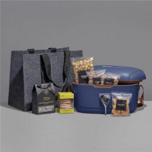 The Yatta range of hampers is expertly crafted to provide a delightful experience with a curated selection of premium items and edible treats. Elegantly presented in a luxury Serendipio Marina 12-Litre Cooler Box. This hamper is further encased in a large size durable Dark Grey RPET felt gift bag.