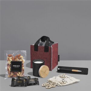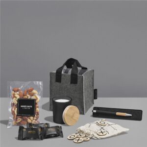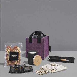 The Yatta range of hampers is expertly crafted to provide a delightful experience with a curated selection of premium items and edible treats. The contents are elegantly presented in a Yatta sublimated RPET felt mini gift bag.