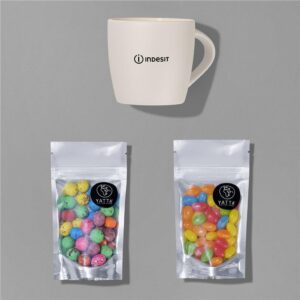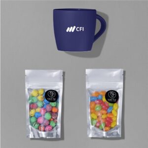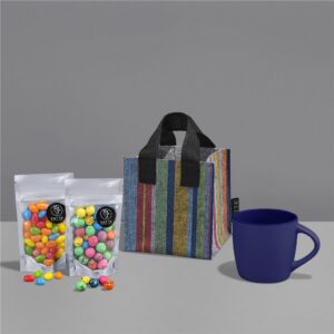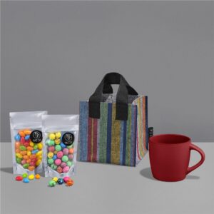 Sip, snack, and smile! The Yatta Mood Maker hamper, which is packed into a mini felt gift bag, creates a cheerful little treat for anyone who deserves a pick-me-up.