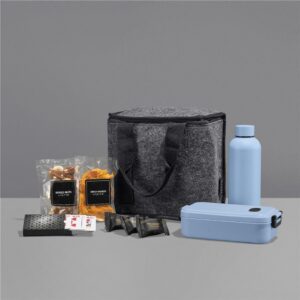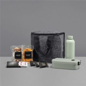 The Yatta range of hampers is expertly crafted to provide a delightful experience with a curated selection of premium items and edible treats. Elegantly presented in a Yatta drawstring bag, this hamper is further encased in a durable Dark Grey RPET felt 12 can cooler bag.