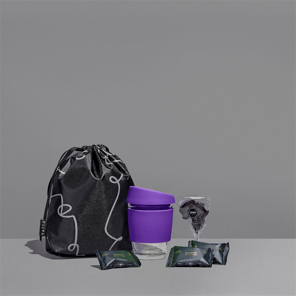 The Yatta range of hampers is expertly crafted to provide a delightful experience with a curated selection of premium items and edible treats. This hamper is elegantly presented in a Yatta drawstring bag.